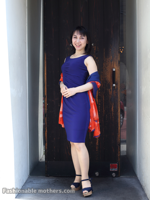 鮮やかなロイヤルブルーのコーデが目を引きます。夏らしくて素敵ですね。