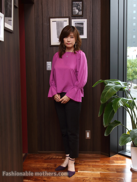 ピンクのトップスが華やか。キャンディスリーブでかわいいです。